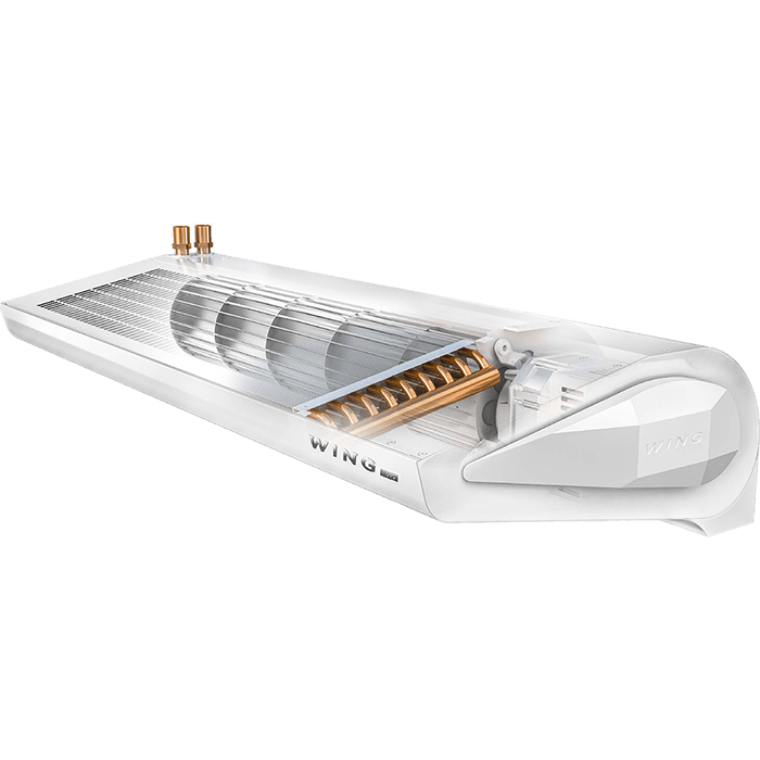 Обновленная версия воздушной тепловой завесы WING с водяным теплообменником.