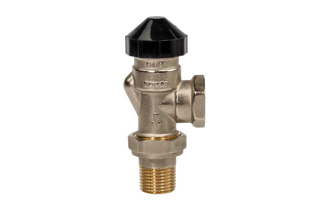 - Клапан Ридан TR-N угловой горизонтальный никелированный, DN 15, KVs 0,4, PN 10, 120 °C, с внутренней резьбой, для двухтрубной насосной системы отопления