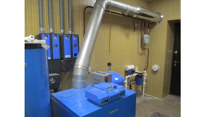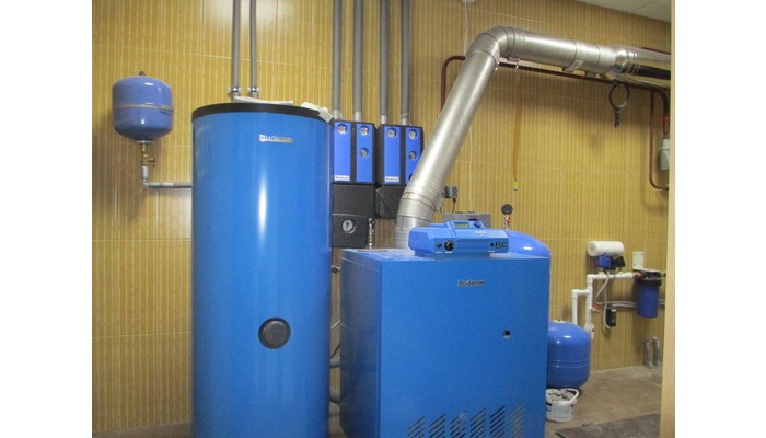 Установлен напольный газовый котел BUDERUS на 38 кВт, в связке с бойлером BUDERUS для приготовления горячей воды.