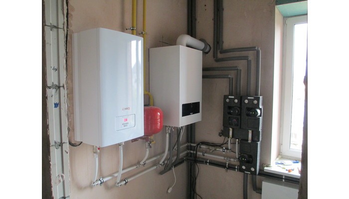 Установлен газовый настенный котел BUDERUS, как основной источник отопления, на резерве — электрический котел PROTHERM на 14 кВт.