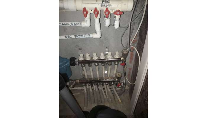 Отсечена баня — установили настенный электро котел, заменили коллектора теплого пола.+ добавили автоматику теплого пола.