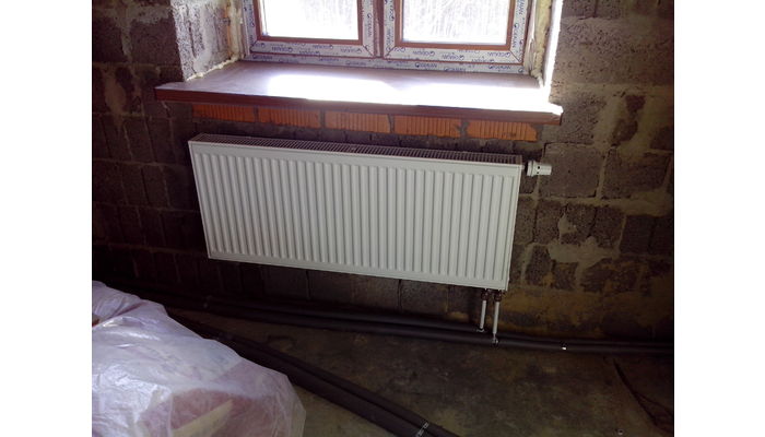 Произведен монтаж радиаторов стальных панельных с нижним подключением и термоголовками PURMO.
